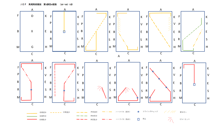 第5課目Aは、フライングチェンジ、ハーフパス、ピルーエットなどが経路に加わります。