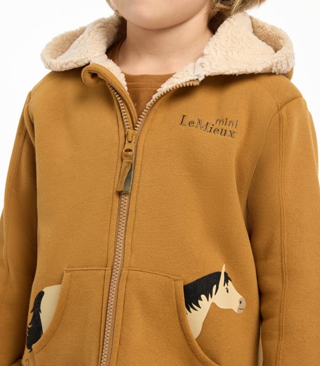 胸元とフードの内側には、柔らかく心地よい裏地が施され、小さなお子様を寒さから守ります。