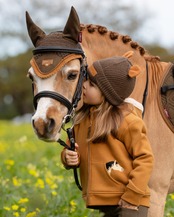 ポケットから覗くかわいいミニポニーのディテールと、背中にまで広がる小さな蹄の跡の刺繍がカワイイ。