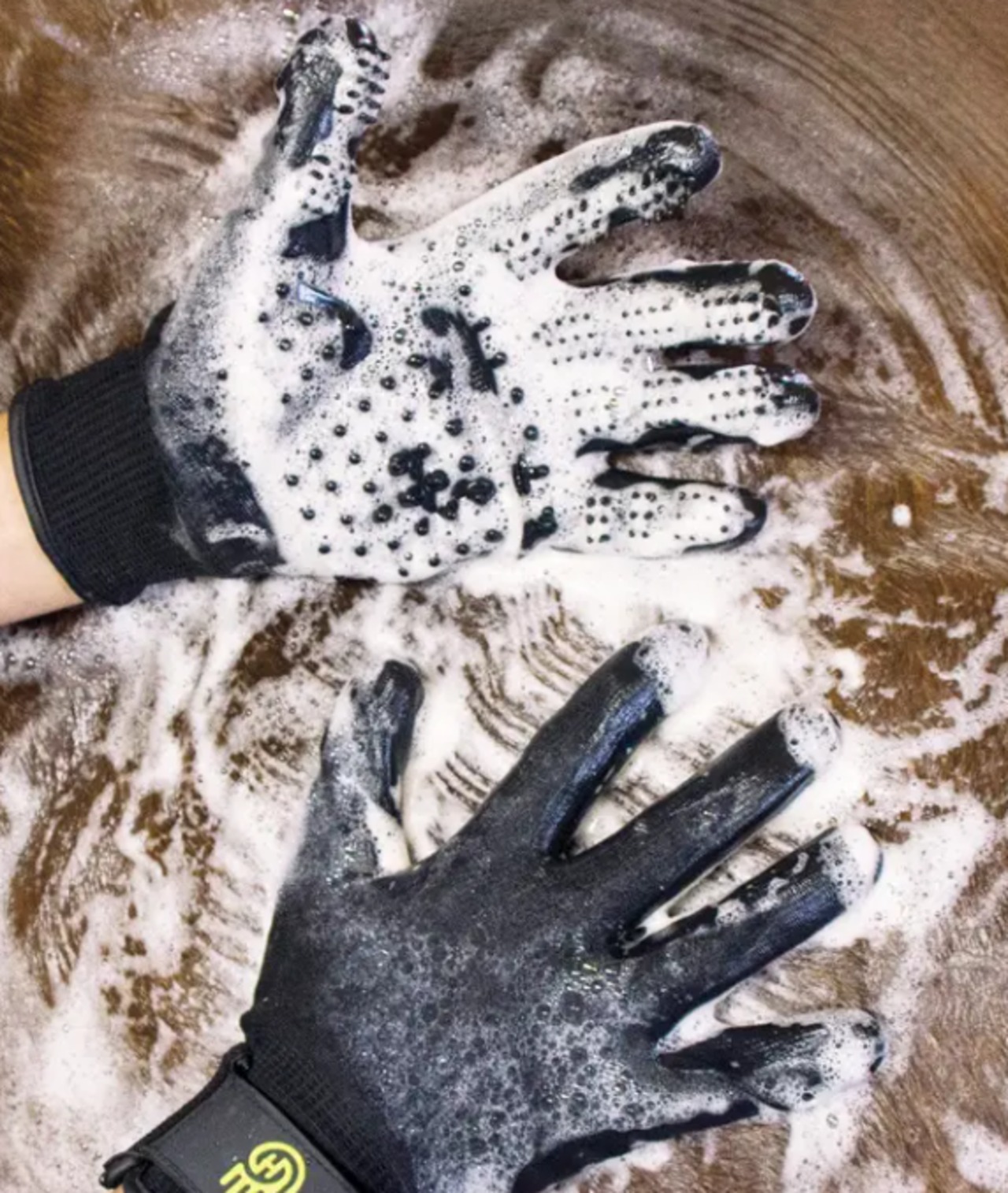 手袋の触感は、脚、顔、耳などの敏感な部分を優しく洗浄します。