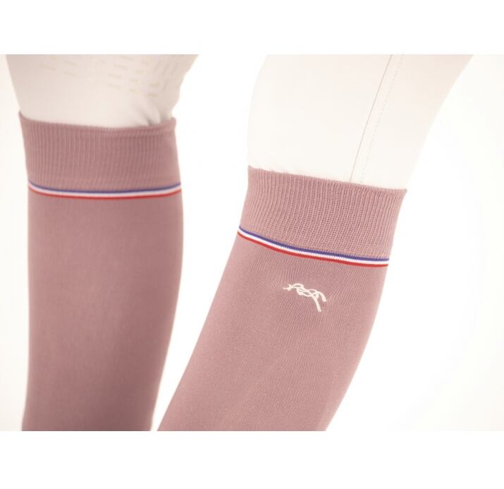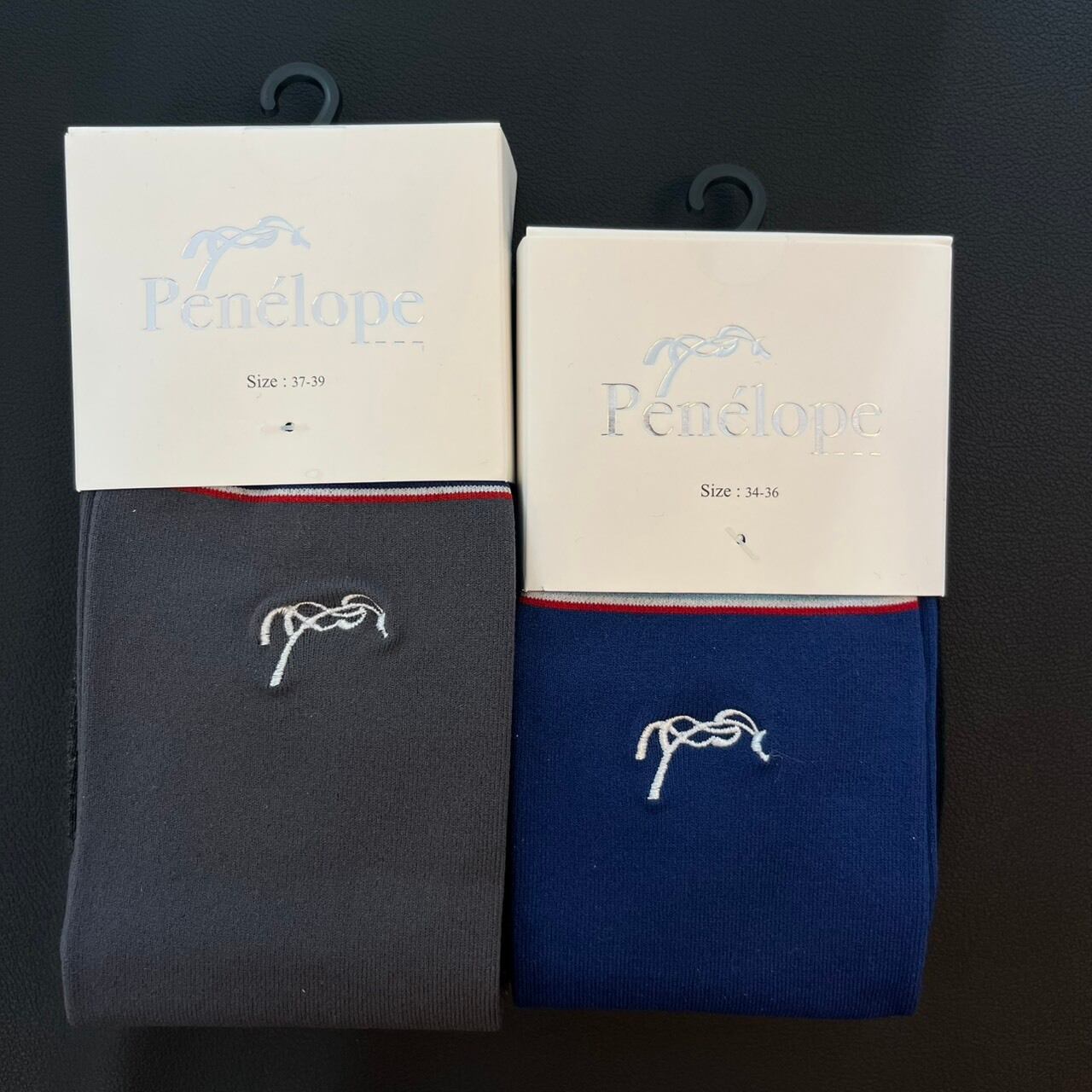 上部に3本の細いトリコロールストライプと小さなPénélopeロゴが入った無地のソックス1足と、ダイヤモンドステッチと小さなPénélopeロゴが入ったソックス1足が含まれています 。