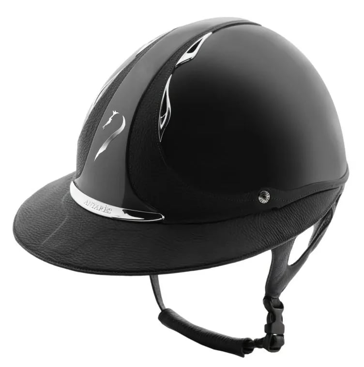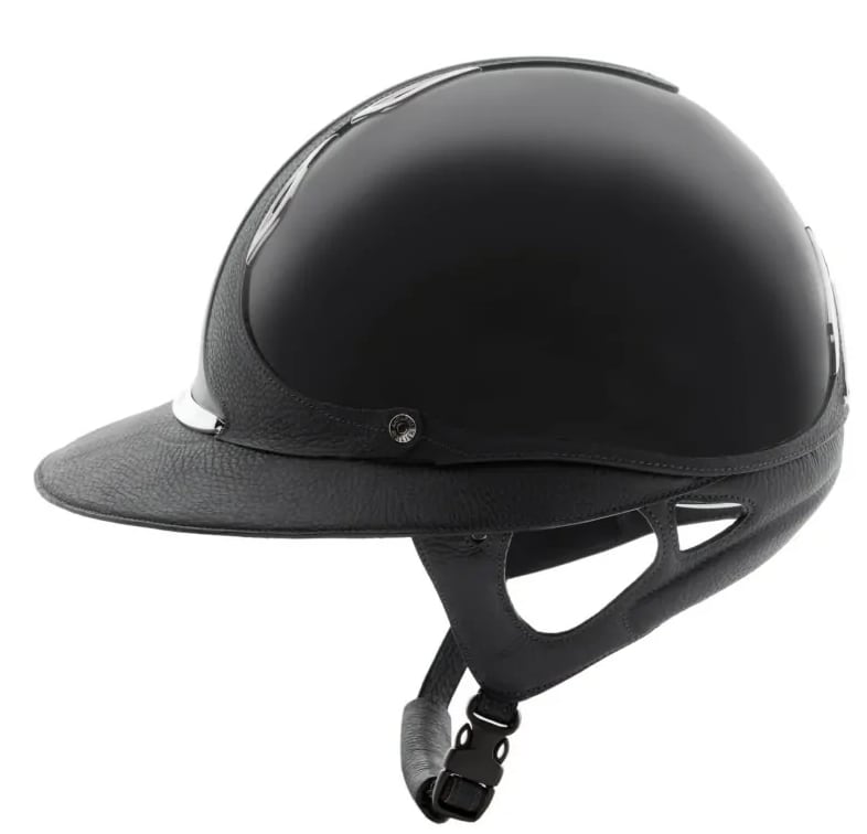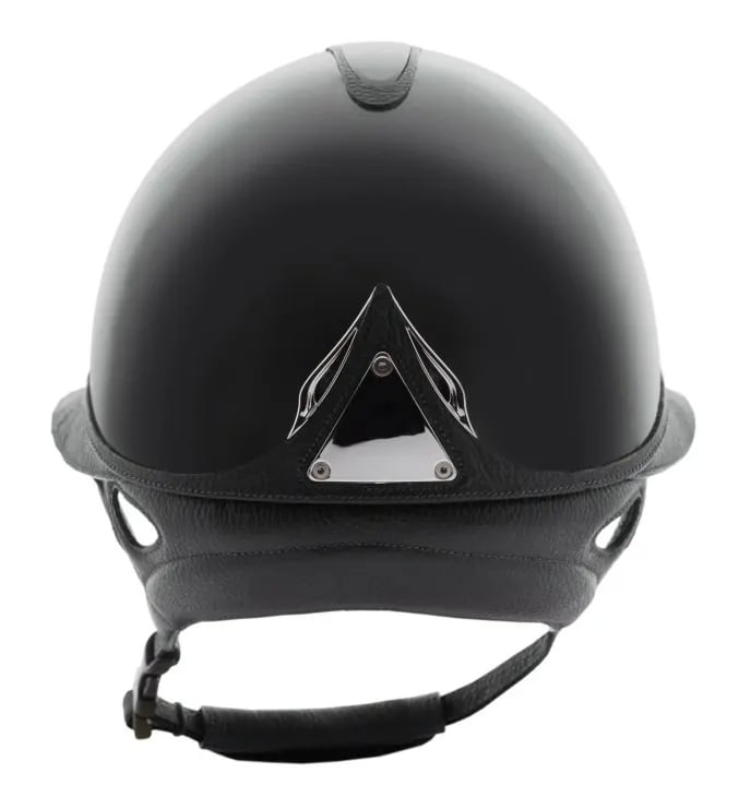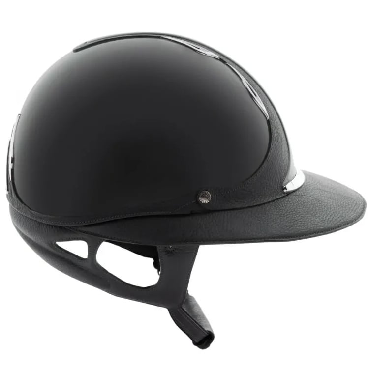 プレミアムヘルメットは、光沢のあるシェル仕上げが特徴です。美観を追求し、レザーとシェルは同色で統一されています。