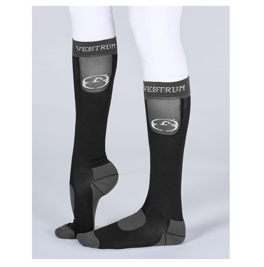 伸縮性のあるコットンとポリアミドを使用した、男女兼用の乗馬用ソックス。