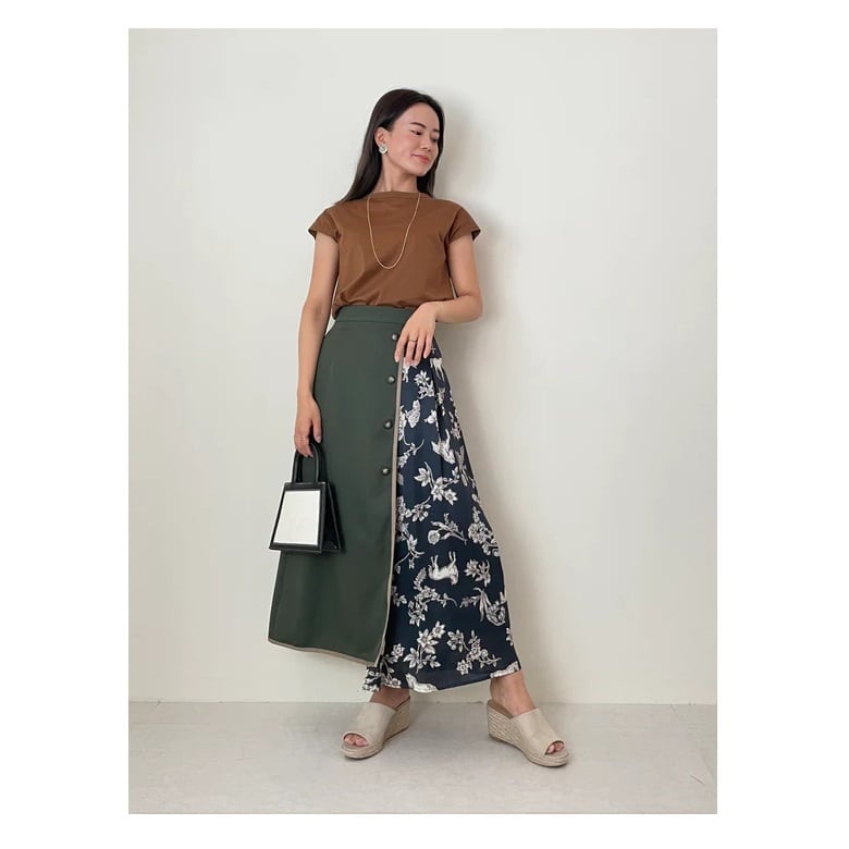 Aラインシルエットですが腰回りはすっきりと、裾もボリューム感が出すぎずスタイリングしやすいシルエットにまとめました。