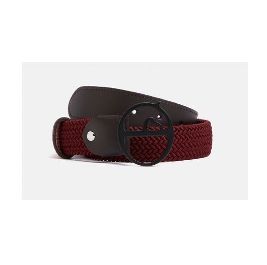 牛革、ゴムバンド、ヴェストラム型の金属バックルで作られたベルト。